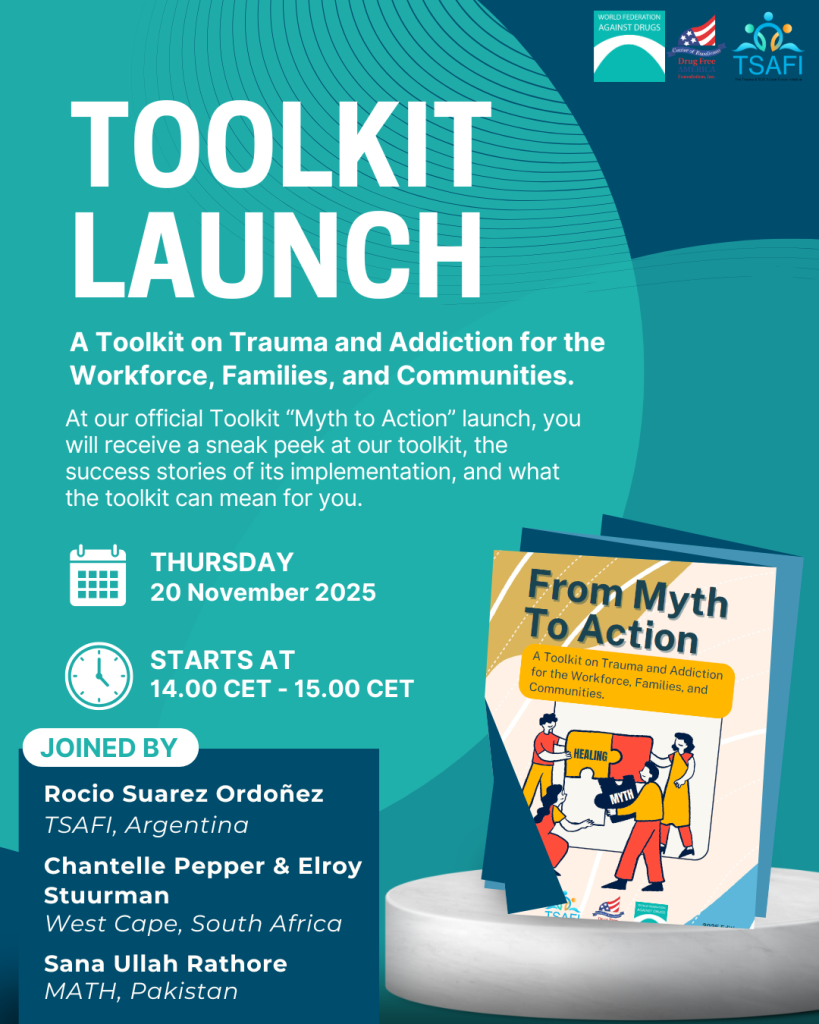 We’re delighted to invite you to the Launch Webinar of our new “Myth to Action” Toolkit, a practical resource on Trauma and Addiction for the workforce, families, and communities. The toolkit is an outcome of the Myth to Action Campaign and a product of TSAFI, an initiative led by Drug Free America Foundation and World Federation Against Drugs.